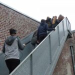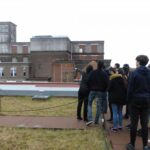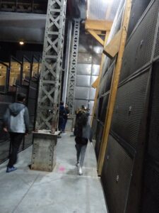 La journée se clôture par la visite de la Condition Publique. Munis de leurs appareils enregistreurs les jeunes suivent Ute et découvrent les différents espaces : les halles, le hall, la salle de spectacle, les toits…